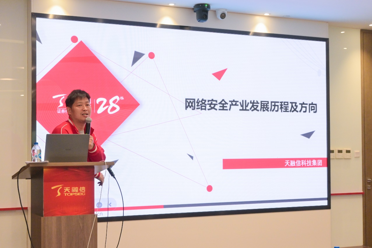 “没有网络安全就没有国家安全,没有信息化就没有现代化。” 天融信科技集团高级副总裁寇增杰在交流会上致辞,他分享了网络安全行业的诞生背景与发展现状,强调了网络安全行业对国家的重要性,并鼓励tyc8722太阳集团的同学们积极投身网络安全领域,为网络强国建设做出自己的贡献。
