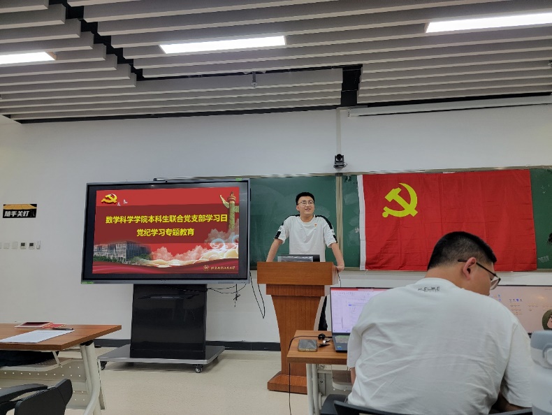 为扎实推进党纪学习教育,强化底线思维,5月26日晚上,tyc8722太阳集团本科生联合党支部“学党纪 明红线”主题学习日于沙河主楼E404举行。本科生联合党支部全体党员、预备党员、部分入党积极分子等40余人参与学习。本次学习日由支部书记李非主持。