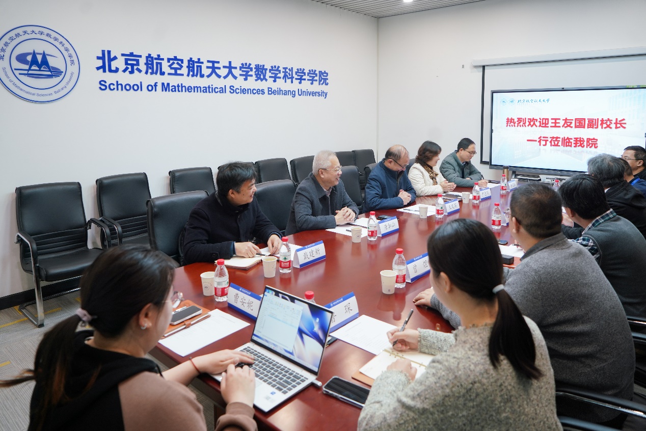3月24日上午,南京邮电大学副校长王友国、理学院党委书记尹志丽、院长唐加山、副院长金正猛、信息与计算科学系党支部书记戴建新一行莅临我院交流访问。我院院长韩德仁、副院长马声明、夏勇、党委副书记曾煜、骨干教师漆毅、教学秘书曹安妮、鲁琛接待了王友国校长一行。