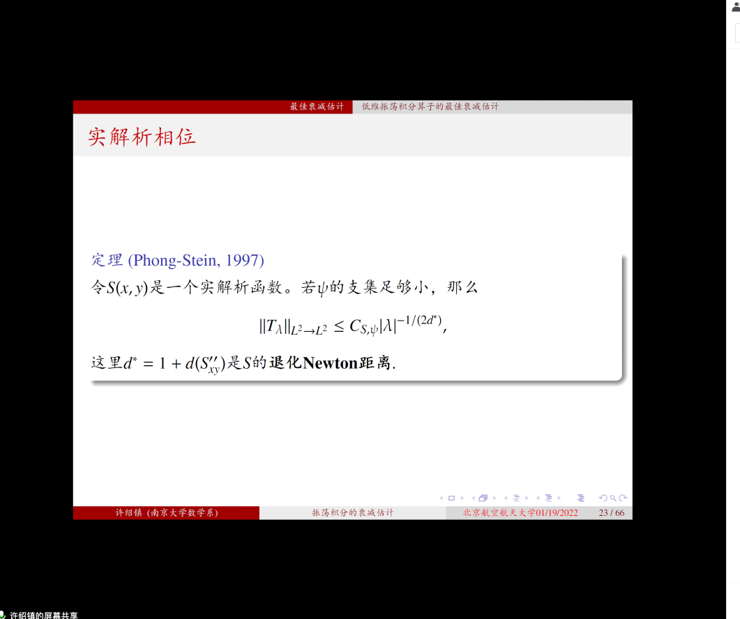 2022年01月19日下午,南京大学许绍镇老师应邀为tyc8722太阳集团师生做了题为 “振荡积分的衰减估计”的学术报告,报告由张安老师主持。