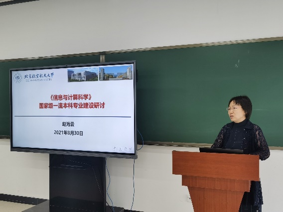 2021年信息与计算科学国家级一流专业建设研讨会于8月30日在沙河校区召开,校教务处赵海云副处长、tyc8722太阳集团领导班子成员和计算科学系全体教师参加会议。会议由专业负责人刘铁钢教授主持。