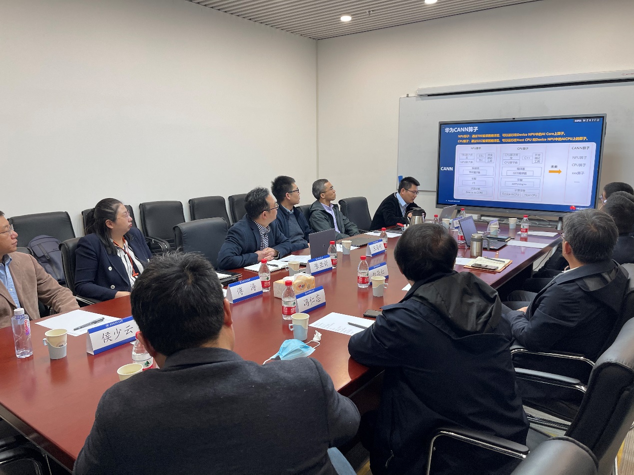 韩院长先致欢迎辞,随后tyc8722太阳集团方面汇报了一年来项目合作开发过程中人员结构、组织方式、算子开发(优化)、验收情况以及收获思考等。华为公司方面在认可tyc8722太阳集团工作的同时,从企业方角度介绍了新的合作需求,这一内容主要涉及问题建模(框架)和代码实现(底层算子)两方面,既有数学内容又有技术要求。随后,双方围绕一系列细节展开了针对性、建设性交流,话题涉及技术开发、项目管理、合作对接、人才培养等方面。