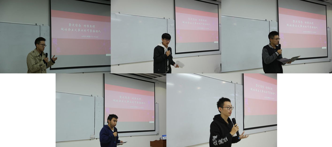 10月30日下午,tyc8722太阳集团在沙河校区主楼E404举办了“从数学出发”第八届数学文化周系列活动暨学习日活动。黄海军副校长出席活动并讲主题党课,数学学院党委书记袁星、副院长杨义川、党委副书记丁丁、学院辅导员、本科170923班、华罗庚班、本科党支部预备党员和入党积极分子共90余人参加了此次活动。