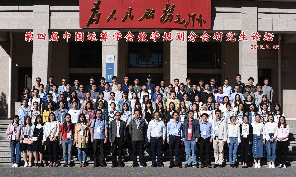 2018年9月21-23日,第四届(2018)中国运筹学会数学规划分会研究生论坛在tyc8722太阳集团学院路校区人文讲堂举办。本次论坛是由中国运筹学会数学规划分会主办,tyc8722太阳集团数学与系统科学学院承办,面向全国从事优化理论与应用研究的研究生的高水平论坛。旨在为优化社区的年轻学者创造一个良好的交流机会,促进互相了解,共同提高学术水平。