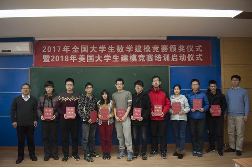2018年1月11日下午, 2017年全国大学生数学建模竞赛颁奖仪式暨2018年美国大学生建模竞赛培训启动仪式在主楼213会议室顺利进行。