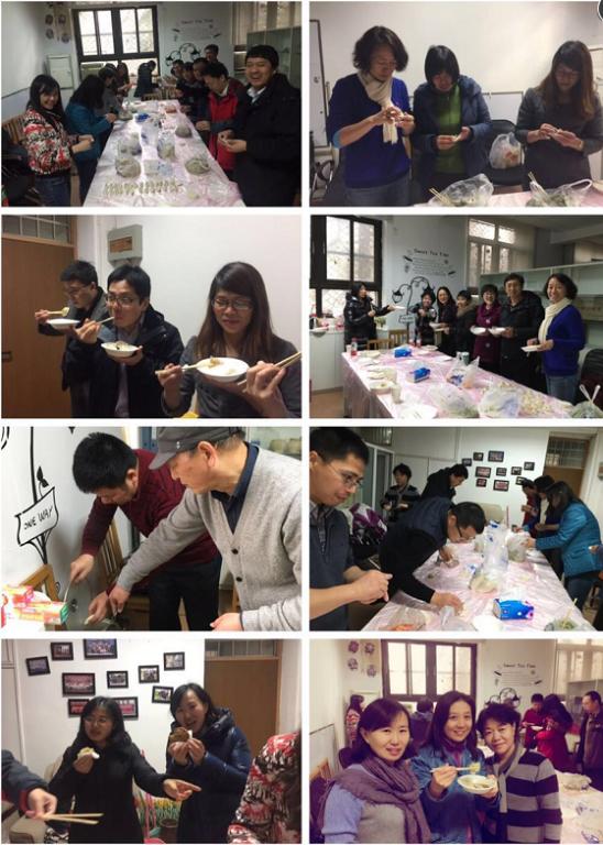 一时间,南腔北调,欢声笑语。除了科研教学之外,发现了一批能工巧匠。不同家乡风格的饺子像变魔术一般堆满了案几,高宗升老师自告奋勇,当起了煮饺子的“大师傅”。果然,老将出马,一个顶俩,一锅锅热气腾腾的饺子随着悠长的吆喝端到了每位老师面前,气氛达到了高潮。