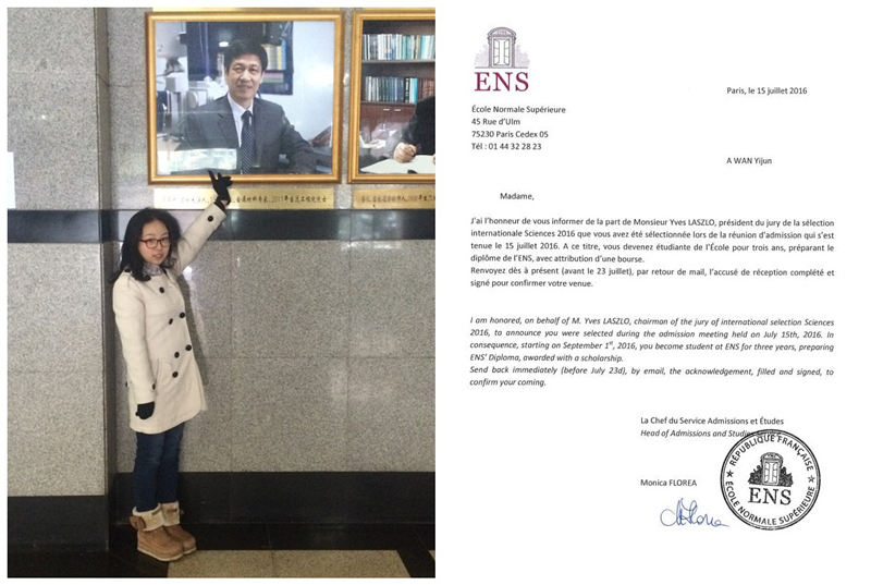 在刚刚结束的巴黎高师国际生选拔中,2013级华罗庚班万艺君同学表现出色,被巴黎高师数学系录取。 巴黎高师是法国最具盛名的精英学校,已为法国培养了12位诺贝尔奖得主和10位菲尔兹奖得主。同时,它还培养出了众多虽未拿奖,但却开创了百年潮流、足以永垂史册的科学、文化人才。如数学界的傅里叶、勒贝格、伽罗华;哲学界的让-保罗·萨特和米歇尔·福柯等。