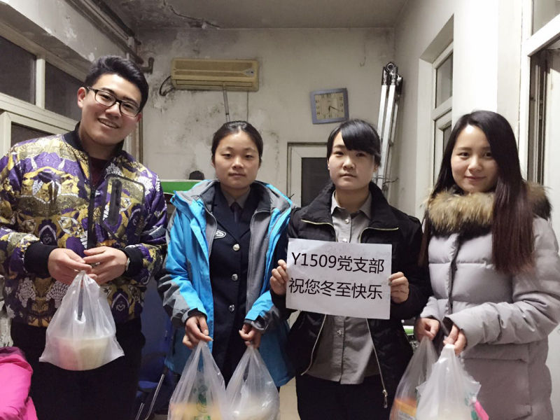 最后,在同学们的期待中,一碗碗热气腾腾的饺子被端上了餐桌。同学们按照之前的计划为在寒冷的冬天坚守岗位的北门、图书馆、宿舍等地方的职工们送去水饺,并以Y15091党支部的名义送上“冬至快乐”的祝福,一份份饺子为这个冬天增添了浓浓暖意。