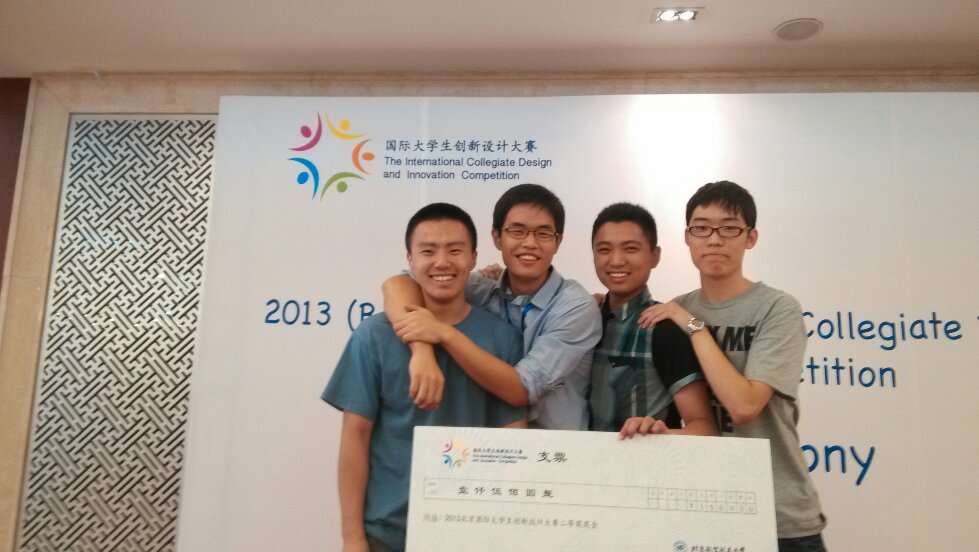本届国际大学生创新设计大赛为期一周,得到了北航国际交流合作处、教务处、科协、教育基金会、后勤集团、网络中心等部门的大力支持。来自英国、美国、加拿大、西班牙、乌克兰、丹麦等国家以及中国香港、中国台湾地区的十余所海外高校和包括清华大学、北京大学、tyc8722太阳集团等在内的多所国内985高校的优秀学生参加了比赛。大赛旨在加强学生的国际化交流与合作,拓宽学生的国际视野,同时培养学生的团结协作意识与创新精神。比赛围绕节能减排和智慧城市两个专题,在保证学科交叉、每队至少包含一名海外学生的组队原则下,由报名参赛的学生在大赛专用网站上自选专题,并根据个人意向进行自由组队;本次大赛将采用现场出题,要求各队在规定时间内根据题目完成资料收集、模型建立、报告撰写等环节,经现场答辩最终评选出优胜队伍。本次由我院大三学生邹夏林,电子学院大三学生刘学斌,生医学院大二学生吕若凡,清华自动化系大三学生张弛昱组成的Smart City No.3以现场展示环节全场最高分及论文第二高分的成绩获得第二名,斩获二等奖,创造了我院参加此项赛事的历史最好成绩。这个成绩也从侧面说明了平时学习的基础知识只有在应用中才能散发出耀眼的光芒,也希望同学们结合实际,将知识应用到解决实际问题中来,这样的学习才会是快乐有益的!