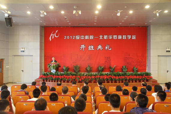 中国科学院数学与系统科学研究院崔俊芝院士、党委书记兼副院长汪寿阳研究员、华罗庚家属华密女士也分别致辞,鼓励大家全面发展,提高人文素养,做创新型人才。2012级华罗庚数学班新生代表殷子樵同学代表全体华班学生承诺,华班学子一定勤奋学习,勇攀高峰,为祖国撑起一片蓝天。开班仪式在热烈的氛围中圆满结束。