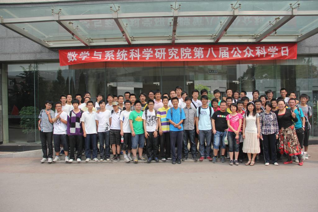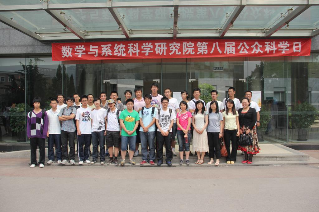 2012年5月19日,北航10级、11级华罗庚班应中国科学院数学与系统科学研究院的邀请,参加了研究院主办的公众科学日活动。在活动中,华罗庚班的学生们饶有兴趣的听取了多场报告,报告内容涉及理论数学、计算数学、数学与哲学、数学与云计算、数学与地质灾害、数学与系统生物学等主题报告。首先,著名的数学家、华罗庚数学奖得主王元院士用通俗易懂的语言,为在座的观众介绍“哥德巴赫猜想”,并且用简洁的语言介绍了“哥德巴赫猜想”中的一些推论和命题的证明。之后研究院最年轻的院士席南华院士为学生做了“认识数学”的主题报告。在两场报告之后,研究院专门设计安排了三场数学与其他交叉学科的主题报告,分别是金雅芬主任的“未来十年云计算讲给社会发展带来革命性的变化”的报告,刘勇副研究员的“生命的乐章——后基因组时代的系统生物学”的报告,以及刘伟助理研究员的“大规模科学计算与地质灾害的模拟”的报告。报告中,在听观众兴趣浓厚,尤其是提问互动环节,华罗庚班学生思维尤其活跃,提出不少问题。 活动之后学生们仍然激动地聊着此次活动的内容。这次公众科学日活动再一次开拓了华罗庚班学生的视野,也为学生与大师级人物交流提供了宝贵的机会。整个活动以学生们在研究院思源楼前合影结束。