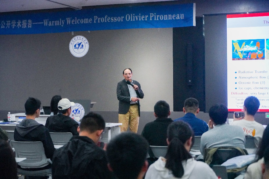 10月27日下午,Olivier Pironneau院士在北航杭州国际校园会议中心主讲《有云大气的辐射传输和飞机尾迹对气候的影响》学术报告。北航副校长赵巍胜,国新院院长洪冠新,数学学院党委书记张筱,国新院副院长张巍、党委副书记应伟东出席。本次报告由中法数学实验室(筹)执行主任牟晨琪主持。北航数学学院、集成电路学院、人工智能学院和国新院师生200余人参加。