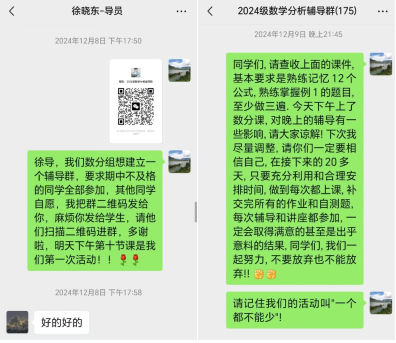 理科大类中有不少学生来自边远地区,数学基础相对薄弱。期中考试后,在辅导员和教辅老师的帮助下,建立不及格同学微信群,课程组统一安排课外辅导。另外,一些中学数学基础正常的同学在大学也遇到了学习困难,因此辅导的同时还特意介绍大学的学习方法,以帮助同学们尽快顺利完成从中学到大学的过渡。由于辅导的效果好,很多成绩好的同学也主动加入了辅导群和参加辅导课,人数达到总数的一半。