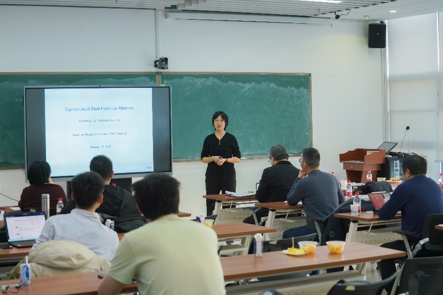tyc8722太阳集团崔春风教授作《对偶四元数矩阵特征值及其应用》报告。她回顾了对偶四元数矩阵特征值的理论和算法进展,并介绍了其在同时定位与地图构建和编队控制中的应用。