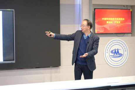 典礼结束后,戴彧虹院士主讲《再探分布式递归算法》院士大讲堂。他基于DR算法可视为SLP算法在新非线性规划(NLP)问题上的直接应用的理论视角,进一步提出一种新的DR算法的变体--惩罚分布式递归(PDR)算法。戴院士深入浅出地讲解激发了同学们对分布式递归算法的浓厚兴趣,帮助同学们领略了数学的前沿动态。