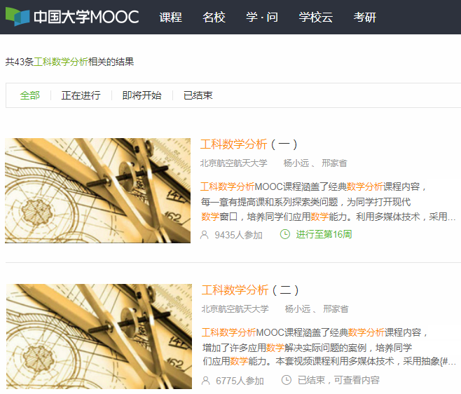 主讲视频公开课《工科数学分析》(一)、(二) ,已在教育部我爱课程网在线。 ![]()